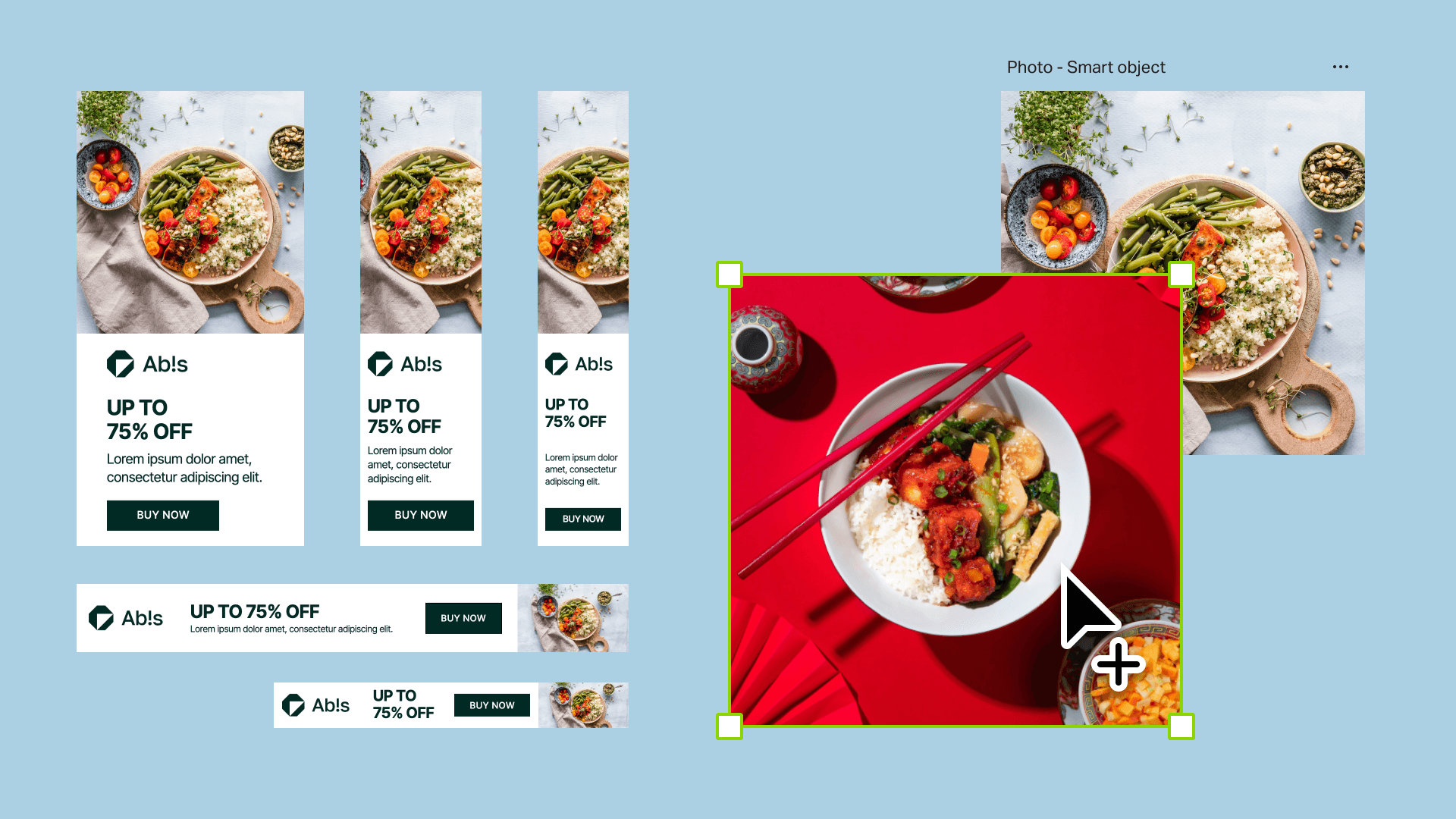 Turn any design into smart object layers and reuse them across multiple compositions. Update the master once, and all instances refresh automatically.